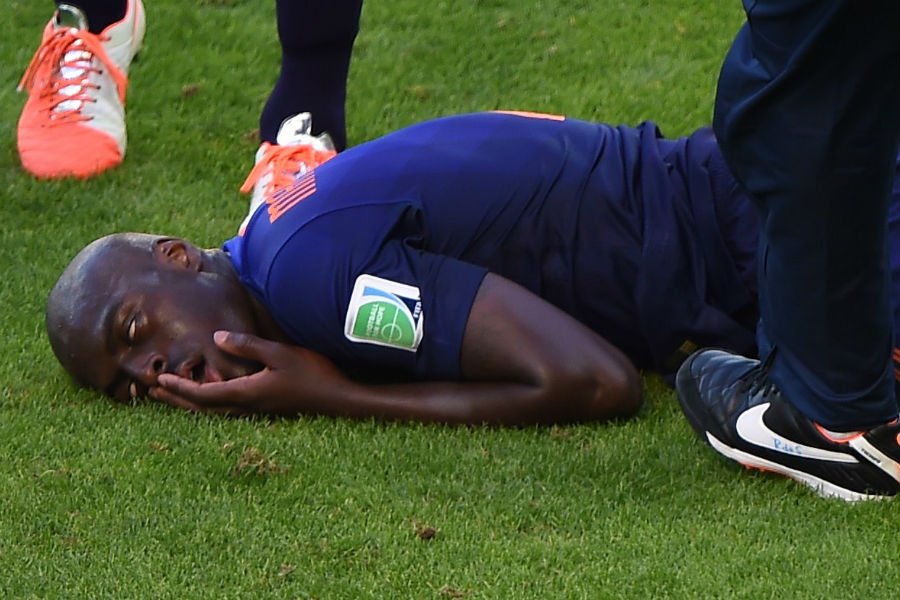 Als voetballer heb je portretrecht maar geen privacy, zeker niet tijdens een WK. Iedere stap die je zet wordt vastgelegd door tenminste drie camera’s. Een foto waarop je wat minder florissant staat afgebeeld zal er altijd komen. Van Bruno wordt een foto gemaakt terwijl hij op de grond ligt na een zware botsing tijdens de wedstrijd Nederland Australie. Alleen het wit van zijn ogen is zichtbaar. Dit is de gehele foto: